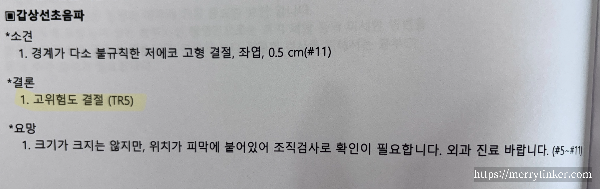 "갑상선에 결절이 있으니 큰 병원에 가서 정밀 검사를 받으라"는 내용이었죠.