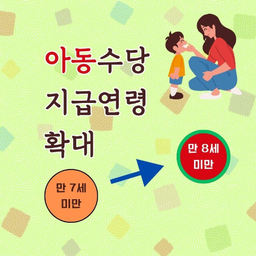 - 지원 대상: 0세~95개월의 아동(만 8세 미만), 기존, 만 7세에서 만 8세로 지급연령이 확대됨.