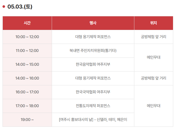 - 내용: 여주시 도자기 판매 및 홍보, 각종 공연 및 체험프로그램 진행