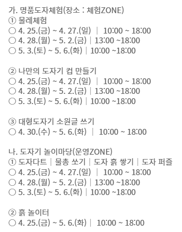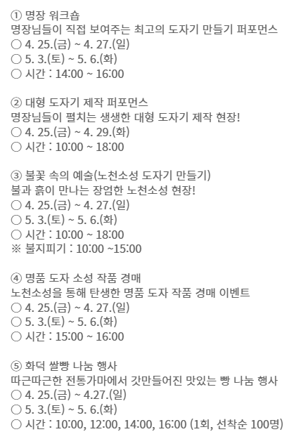 - 장소: 이천도자예술마을(예스파크)·사기막골도예촌